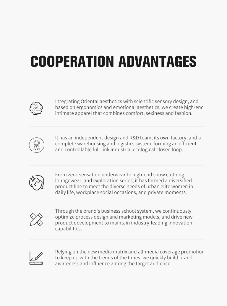 Glamour twice Apparel Co., Ltd. in Shenzhen is a modern women's underwear enterprise integrating design, production and marketing. Its core team has been deeply engaged in the underwear industry for more than 20 years, focusing on creating high-quality intimate clothing that combines scientific sensory experience and Oriental aesthetics for urban elite women aged 28-45.