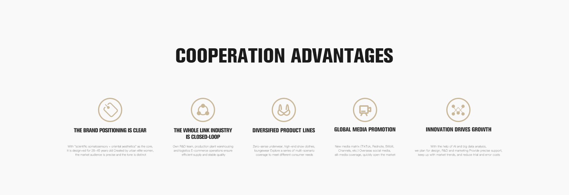 With "Charm Awakens from Within" as its brand core, Glamour twice upholds the corporate spirit of "People-Oriented, Pursuing Excellence". It integrates ergonomic design with fashion aesthetics to bring women a wearing experience that combinescomfort and confidence. Driven by innovation, the company uses AI and new media to empower brand development. Through omni-channel communication and diversified product line layout, it is committed to becoming a representative brand in China's high-end women's underwear field, allowing more women to radiate confidence and brilliance from the inside out.